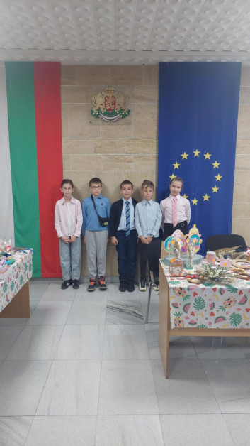 Ученици от III „а“ клас, придружени от госпожа Пенка Тинкова, предлагаха по невероятно атрактивен начин през деня изработените от тях предмети, като същевременно разясняваха благотворителните каузи, в подкрепа на които са вложили труда си, описани на специално табло.