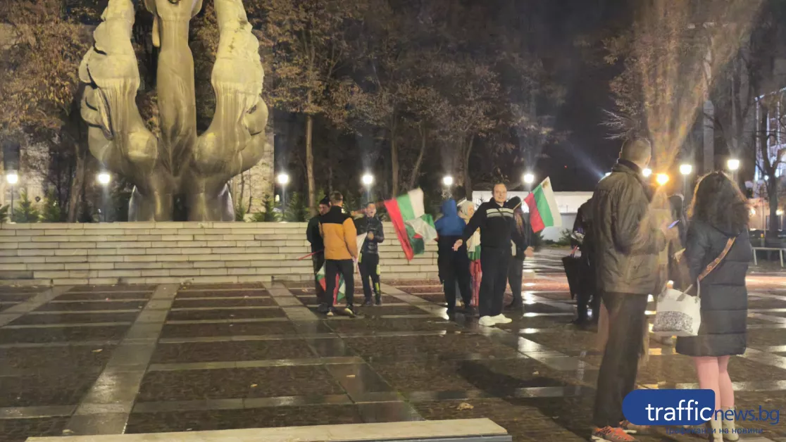 Вятърът и лекият дъжд уплашиха протестиращите пловдивчани. В 18 ч., за когато бе обявено началото на протеста, едва десетина се осмелиха да застанат на пл. "Съединение" в Пловдив, за да заявят гражданските си позиции. И тази вечер протестът се провежда нерегламентирано, тъй като не е входирано нужното уведомление за провеждането му в Община Пловдив. Въпреки това полицията е на място, за да осигури реда.