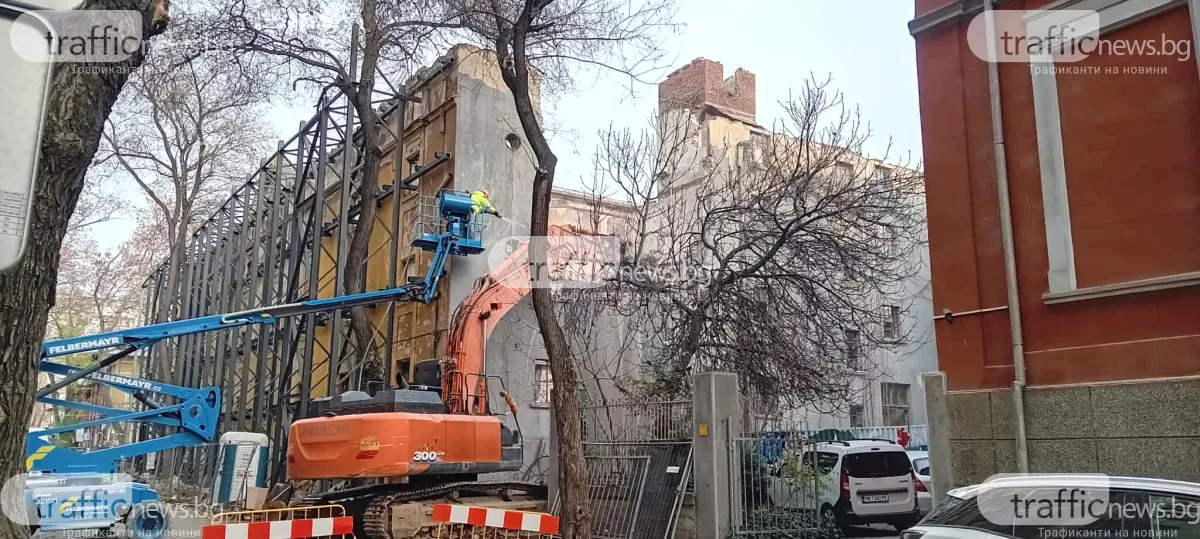 "Проектът, по който работим, е съгласуван с Националния институт за недвижимо културно наследство. Имаме всички необходими разрешителни и документи, включително временна организация на движението по ул. "Иван Вазов". Голямата цел е да съхраним фасадите на тази ценна сграда. Специално за тази задача закупихме специална немска техника, за да може да изчистим безопасно отвътре всички конструктивни елементи и да запазим фасадите в оригиналния им вид. Те ще бъдат възстановени", каза собственикът на фирмата изпълнител "Софтконтракт" Александър Генков.