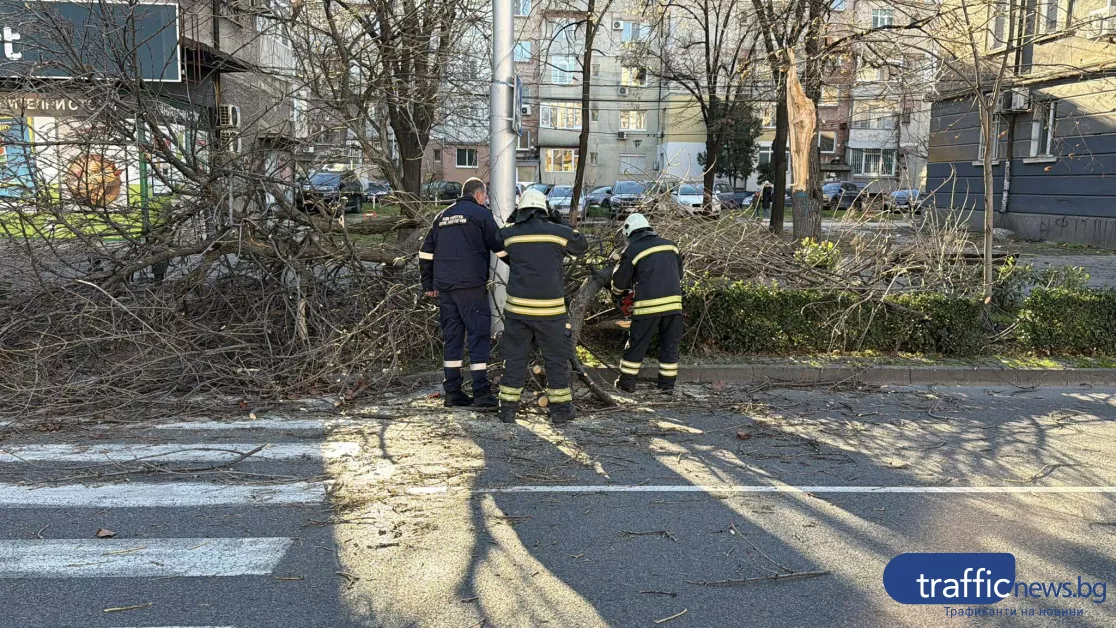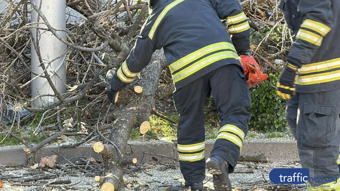 Опасно положение в Пловдив: Огромни дървета падат в целия град заради силния вятър
