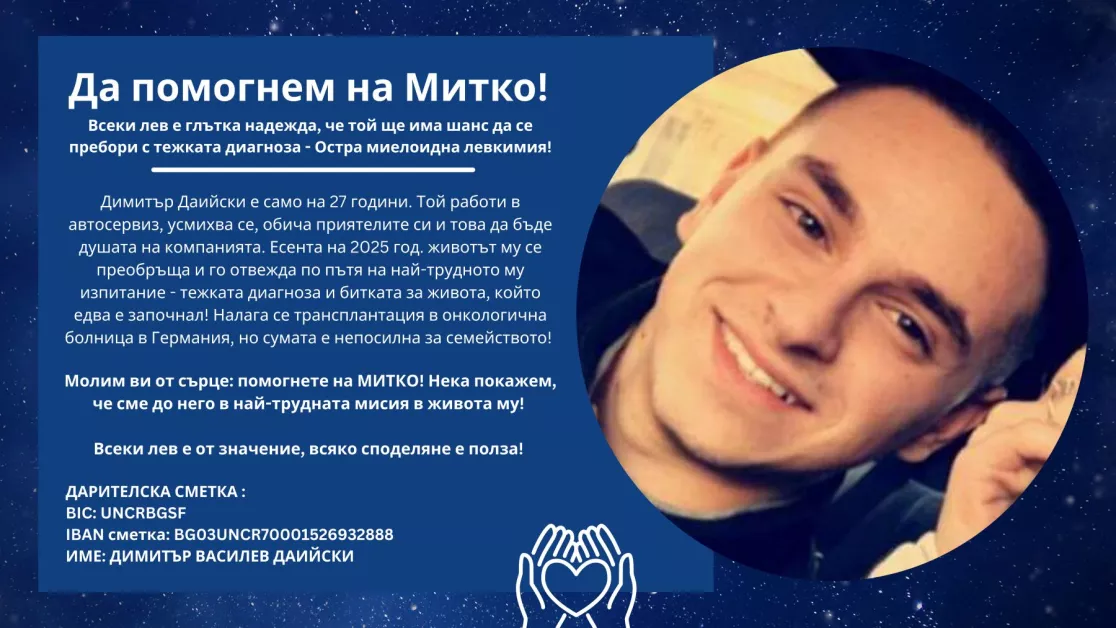 Митко вече премина през първия цикъл химиотерапия. Предстоят поне още два цикъла, след които ще се прецени дали ще постигнем ремисия и ще може да се направи трансплантация на костен мозък – единственият реален шанс за спасение.