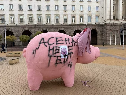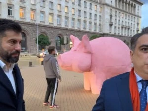 По-рано днес лидерът на "Продължаваме промяната" Асен Василев обясни, че "арт инсталацията" им е символ и предупреждение за това, което представлява проектобюджетът за 2026 г - “една голяма касичка за властта, която всеки от нас ще напълни с по 600 лв.”