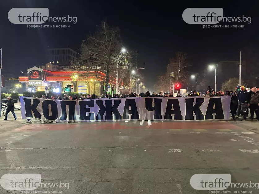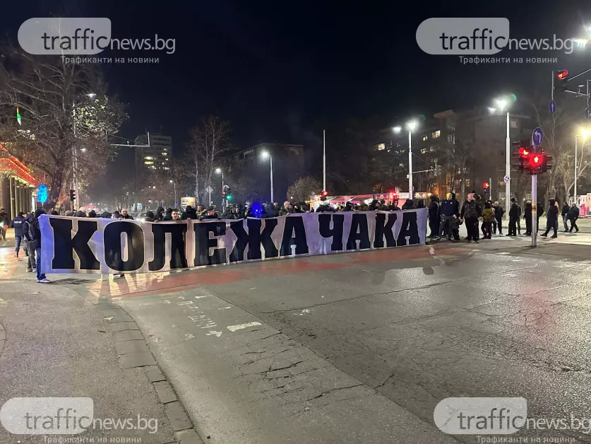 Около 50-тина фена на Ботев излязоха на протеста във връзка с довършването на стадиона. Групата извади транспарант "Колежа" чака, като блокира за кратко кръстовището на бул. "Източен" с ул. "Богомил".