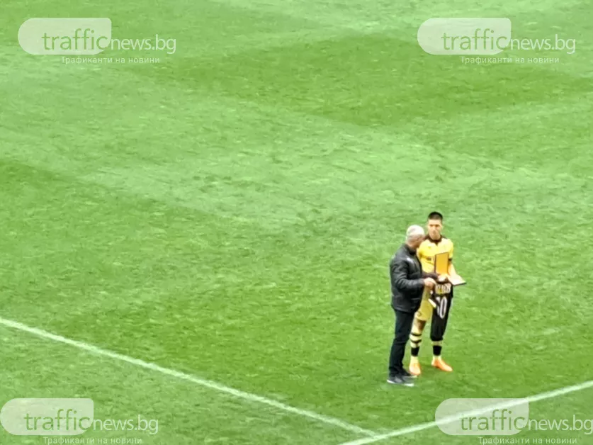 Клубните легенди на Ботев Петър Зехтински, Костадин Костадинов и Димитър Младенов наградиха трима от футболистите на Ботев, които днес отбелязват юбилейни двубои в мача срещу Славия.