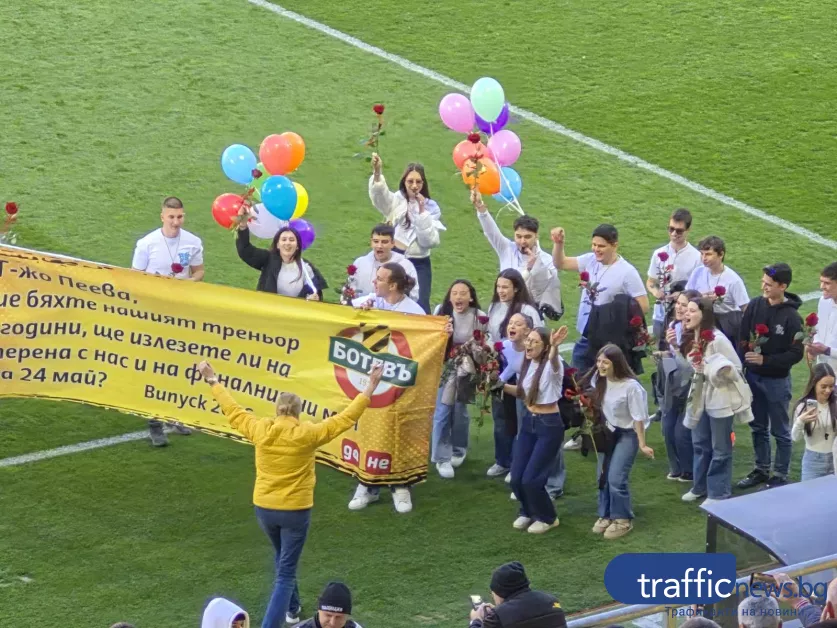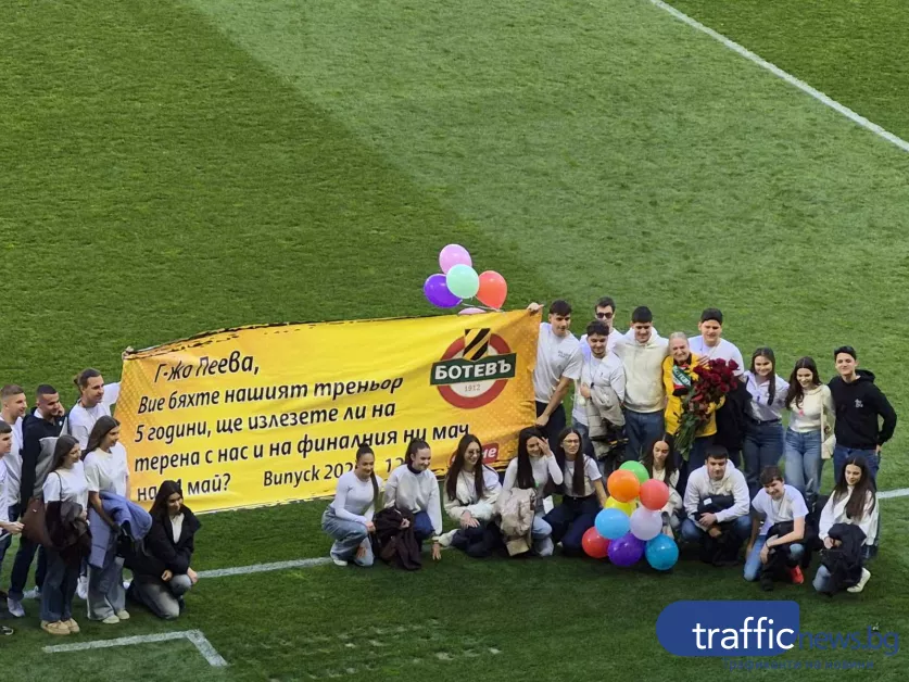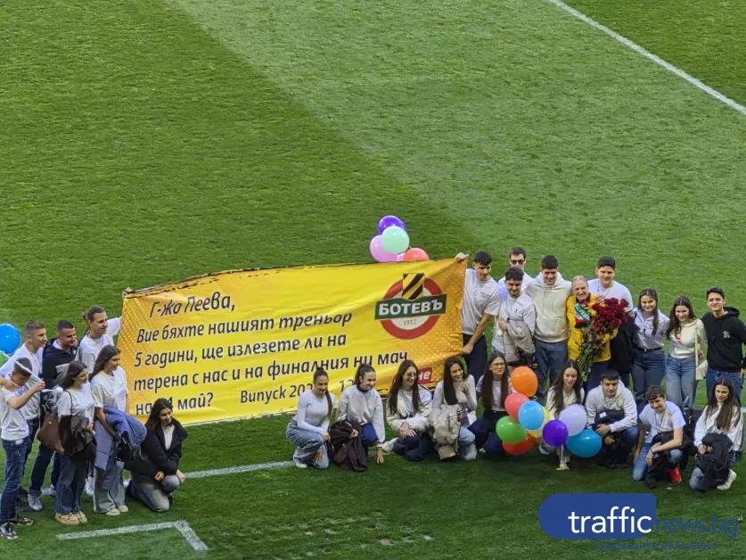 Ученици от 12 Д клас от ЕГ "Иван Вазов" поканиха своята класна госпожа Пеева на бала на полувремето на двубоя между Ботев Пловдив и Ботев Враца.