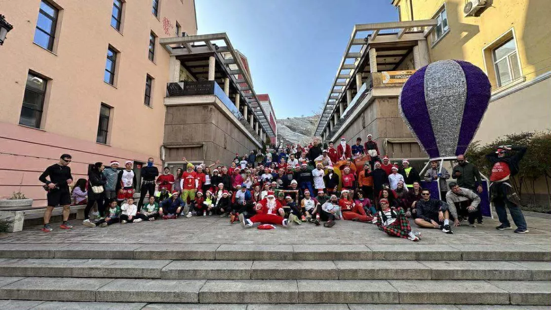 Участниците раздаваха и подаръци на Главната, а те бяха облечени в костюми на дядо Коледа и се снимаха на всичките места, през които премина кроса.