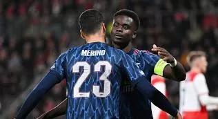 Арсенал се срещна затруднения и победи Славия (Прага)с 3:0. Голмайстори за тима бяха Букайд Сака в 32-та минута, реализирал чрез дузпа, и два гола на Микел Мерино през второто полувреме.
