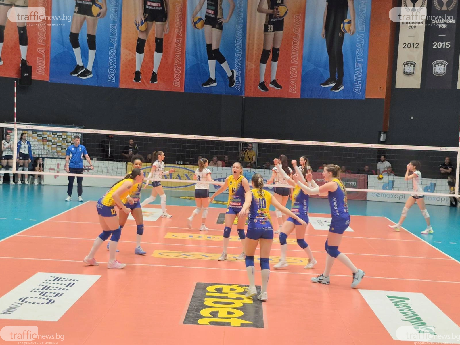 Във втория гейм маричанки поведоха с 8:4, в средата на гейма шампионките водеха с 16:8, а геймът приключи след успешна атака на Борислава Съйкова за 25:17.