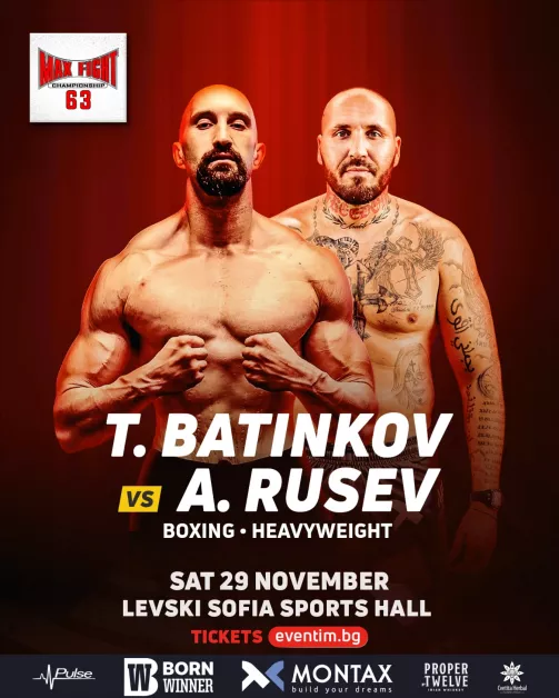 Истински титанически сблъсък предстои на ELITBET MAX FIGHT 63! Едно от най-очакваните зрелища на бойната гала, която ще се проведе на 29 ноември в зала „Левски София“ (Garitage Park), е боксовата среща в тежка категория между Тихомир Батинков и Ангел Русев. Двамата гиганти се подготвят за зрелищна битка.