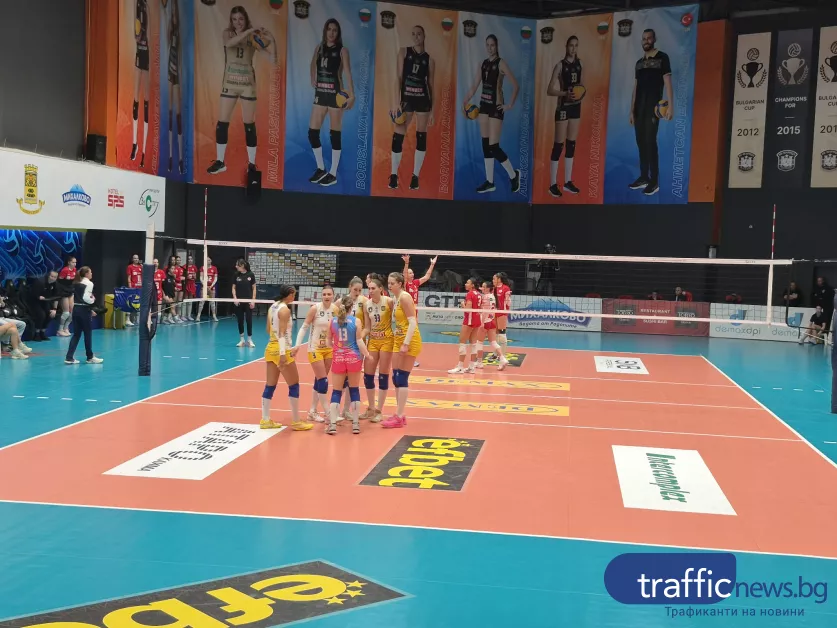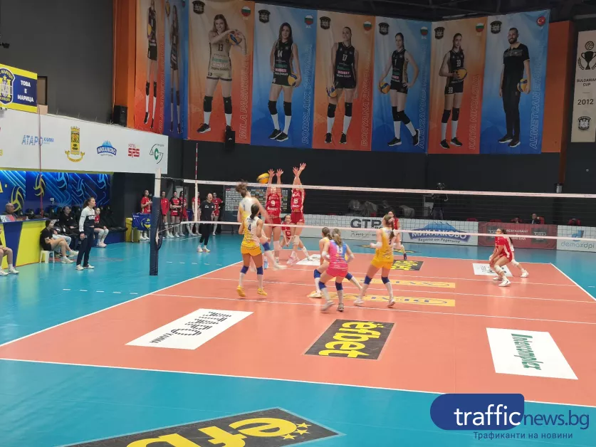 Шампионките взеха инициативата от самото начало на сблъсъка в зала Строител и започнаха да трупат преднина, достигнала 5 точки при 15:10. След това състезателките на Ахметджан Ершимшек нямаха затруднения и първият гейм завърши с блок-аут на Ива Дудова за 25:14.