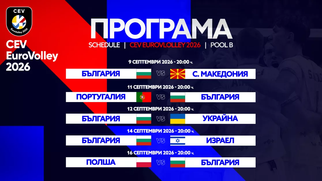 Обявиха официалната програма на мачовете на националния отбор на България по волейбол за мъже от предстоящото Европейско първенство по волейбол 2026, на което страната ни ще бъде един от четирите домакина.