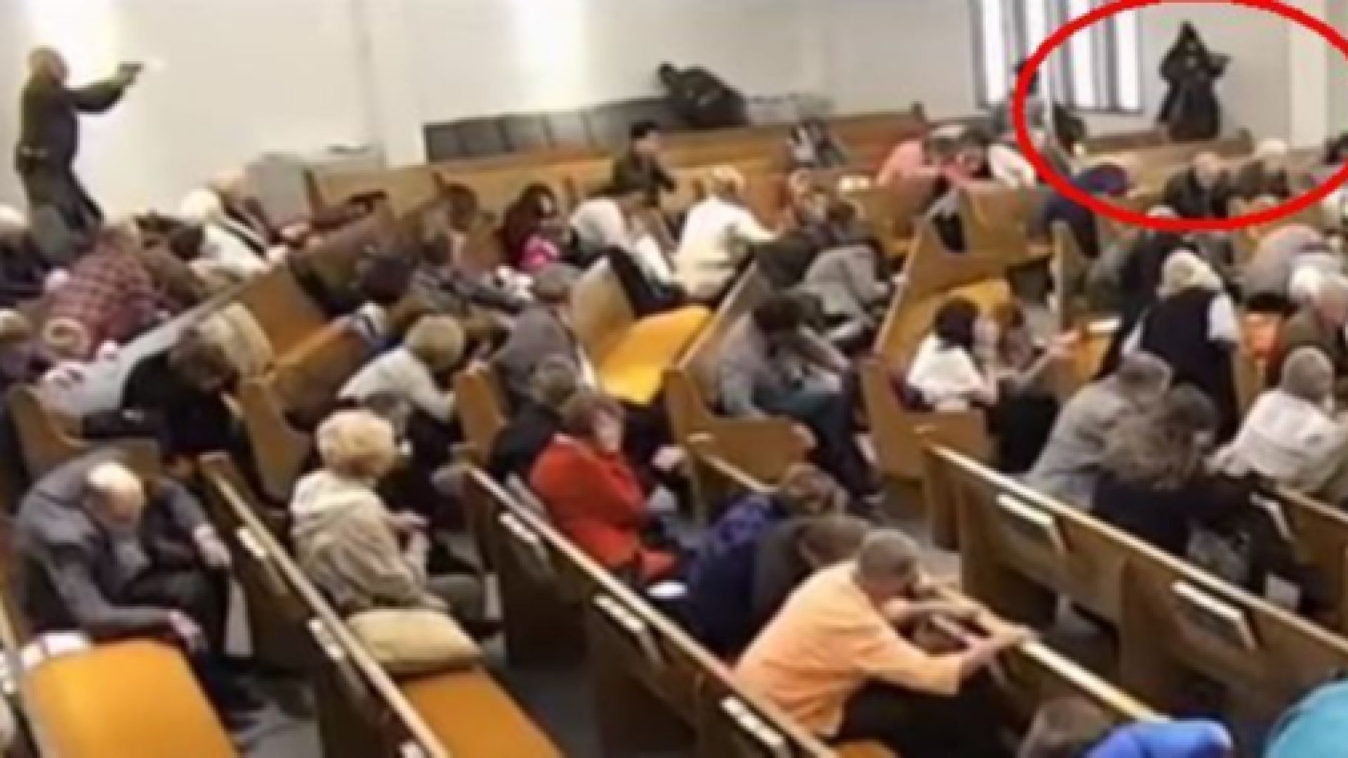 Службата, по време на която е извършено нападението, е била излъчвана на живо в Youtube. От записа се вижда, че стрелецът става от една от пейките, говори с някого в задната част на църквата, след това вади оръжие и започва да стреля. Чуват се писъци, хората - може би стотина души, се крият, клякайки между пейките, или бягат.