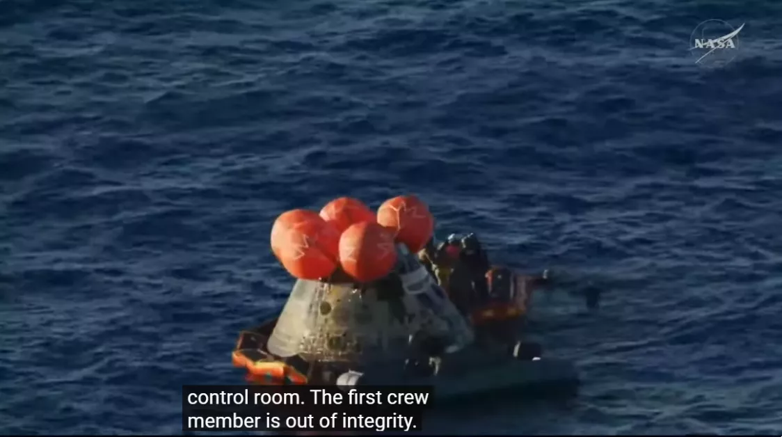 Екипите на НАСА и Военноморските сили на САЩ обезопасиха плаващата капсула и помогнаха на четиримата астронавти да излязат от нея и да бъдат закарани на борда на намиращия се наблизо десантен транспортен кораб USS John P. Murtha, за да преминат първоначални медицински прегледи.