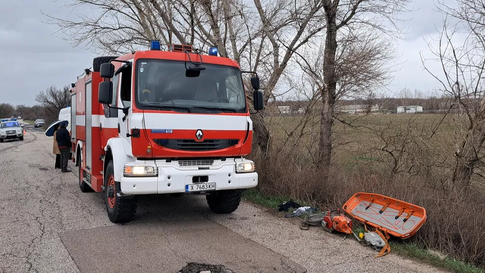 На мястото на произшествието работят екипи на пожарната, които са разрязали автомобила. Полицията извършва оглед и изяснява причините за тежкия инцидент.