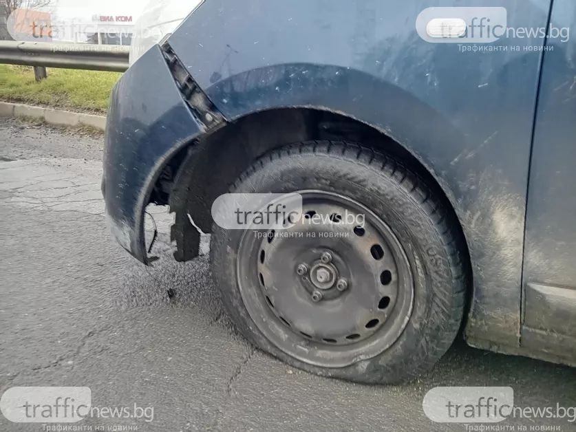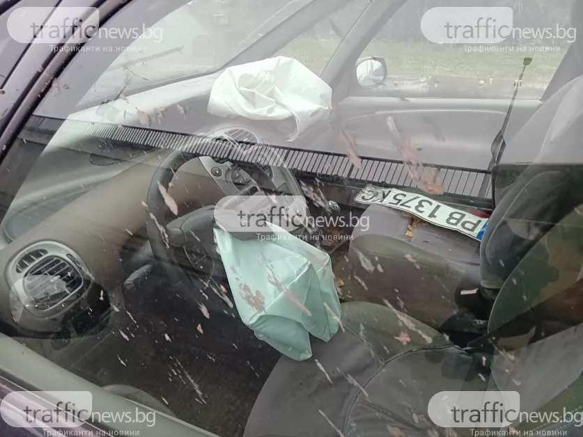 Първият автомобил – „Ситроен“, е със сериозни щети. От удара са се отворили въздушните възглавници, предната броня е паднала на пътя, а регистрационният номер е откъснат. Гумите на колата са разрязани, а предницата е силно деформирана.