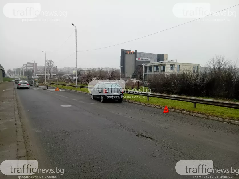 Верижна катастрофа с три коли затруднява движението по възлов булевард в Пловдив