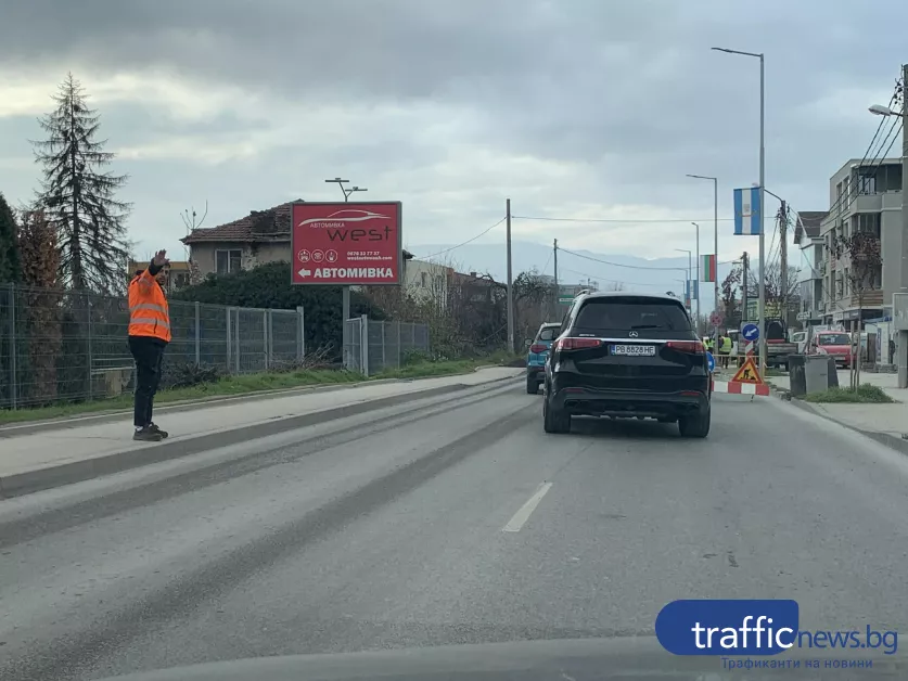 Движението е силно затруднено, а колоните от автомобили пълзят бавно в двете посоки, защото се пропускат поетапно. В навечерието на празниците трафикът в района така или иначе е интензивен, а днешният ремонт допълнително изнервя шофьорите, бързащи за последни покупки и един от последните работни дни.