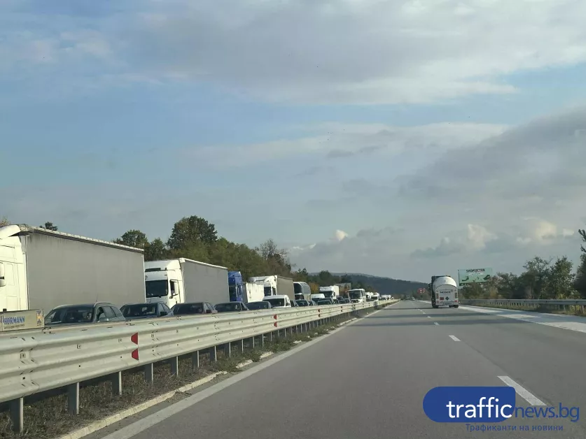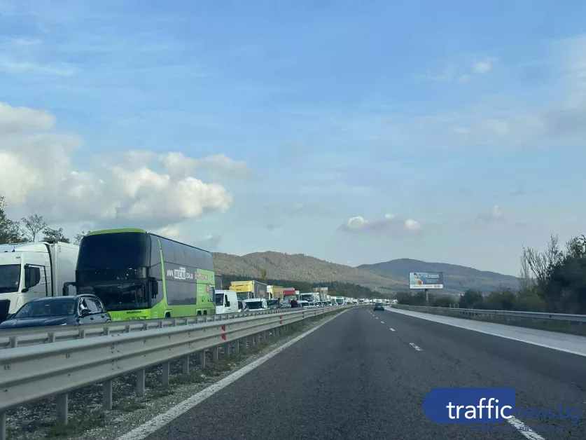 Задръстване има и в обратната посока – към Пловдив. По информация на шофьори опашката започва около 87-ия километър, а преминаването през този участък отнема приблизително половин час.