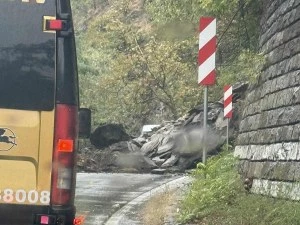 Пътят Асеновград - Смолян е затворенПричината е паднала скала
